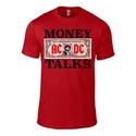 Virallinen AC/DC -fanituote. Punainen aikuisten t-paita, jossa edessä ”Money Talks” -painatus.