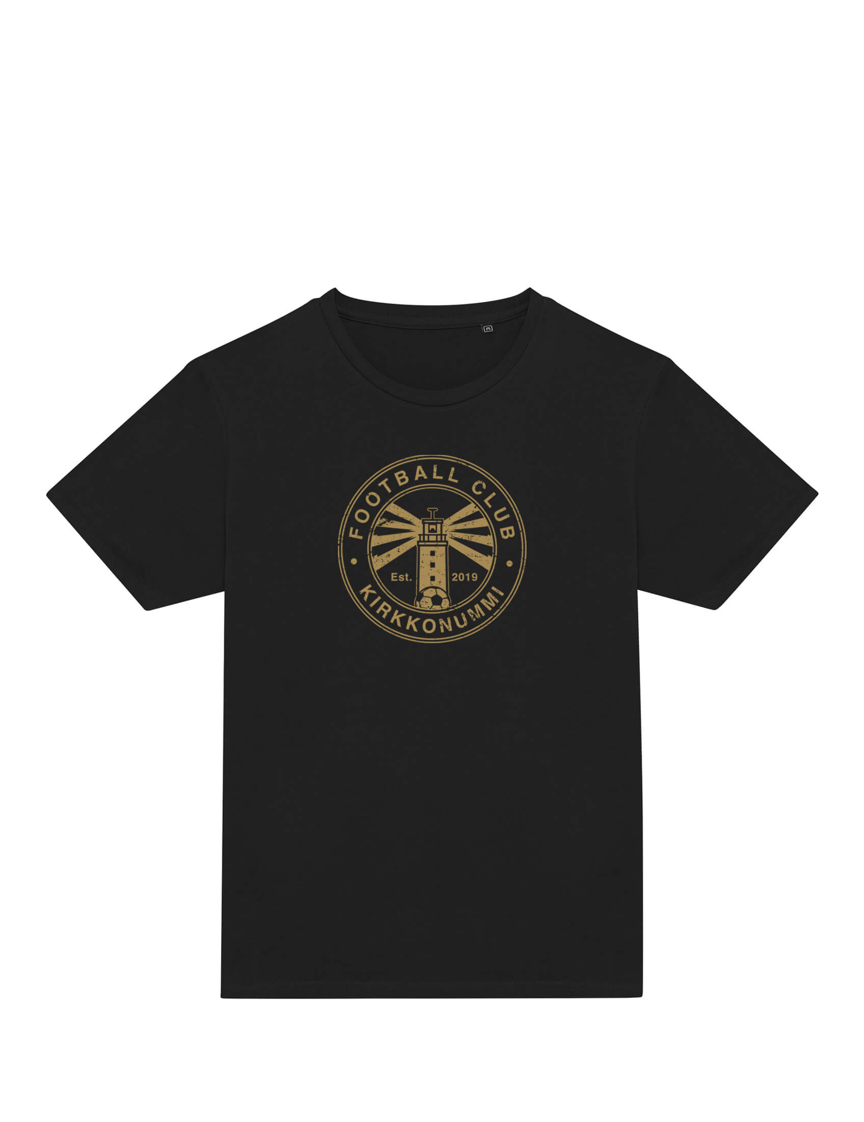 Laadukas ja eettisesti valmistettu musta lasten t-paita, edessä ”Golden Beacon” -painatus.