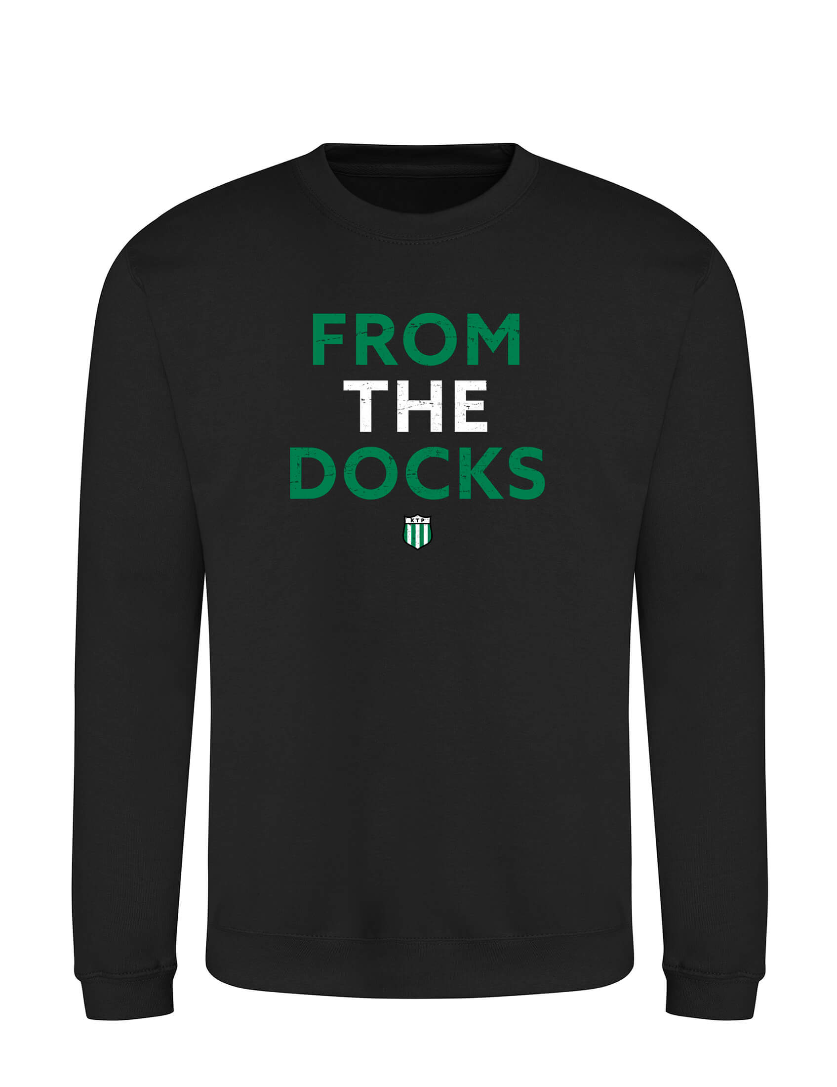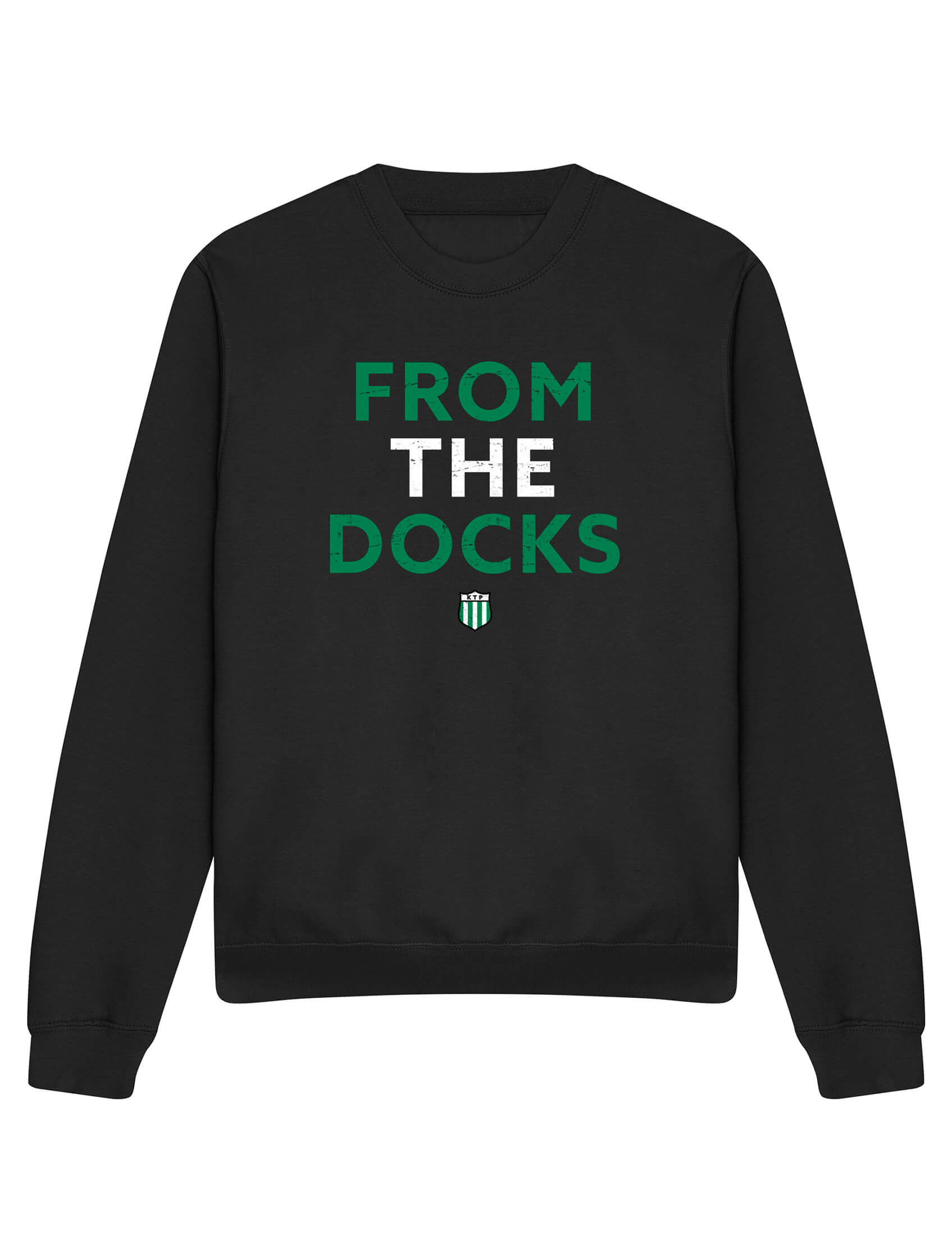 Sporttinen ja trendikäs musta Unisex collegepaita. Laadukas collegepaita on valmistettu korkeatasoisista materiaaleista. Edessä ”From The Docks Distressed” -painatus.