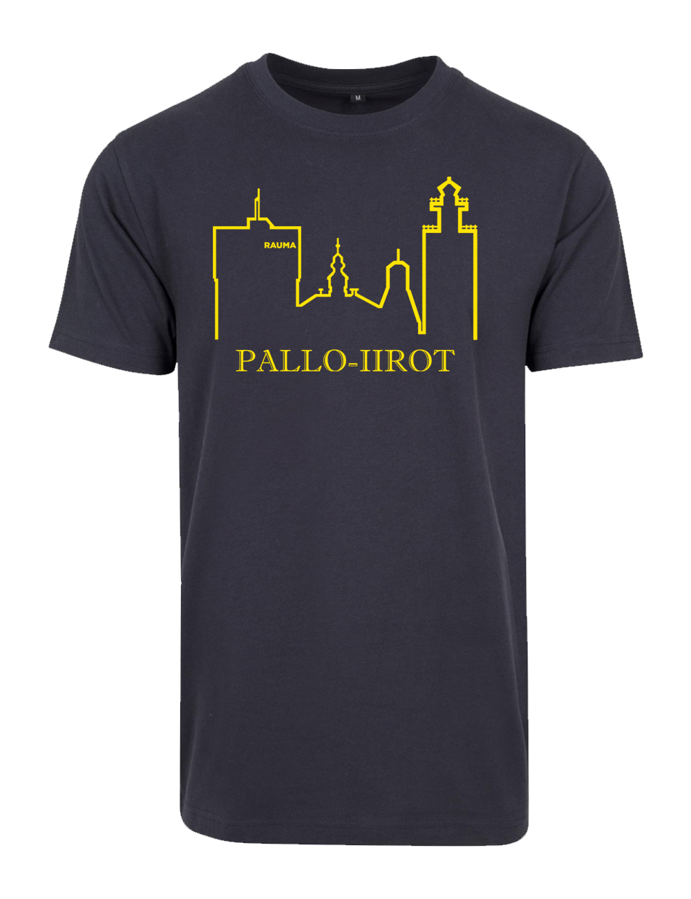 Laadukas aikuisten vastuullisesti valmistettu tummansininen t-paita, jossa edessä iso ”Rauma Silhouette” -painatus.