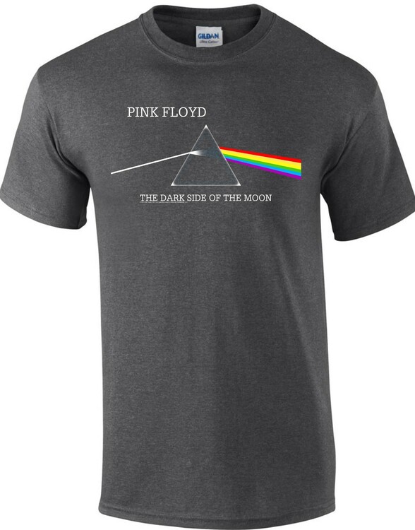 Virallinen Pink Floyd -fanituote. Tummanharmaa aikuisten t-paita, jossa edessä ”Dark Side Of The Moon” -painatus.