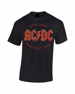 Virallinen AC/DC -fanituote. Musta aikuisten t-paita, jossa edessä ”Dirty Deeds” -painatus.