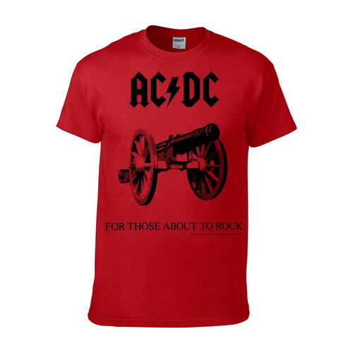 Virallinen AC/DC -fanituote. Punainen aikuisten t-paita, jossa edessä ”For Those About To Rock” -painatus.