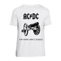 Virallinen AC/DC -fanituote. Valkoinen aikuisten t-paita, jossa edessä ”For Those About To Rock” -painatus.