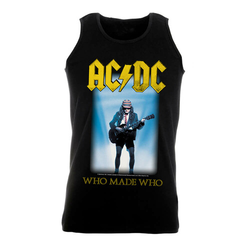 Virallinen AC/DC -fanituote. Musta aikuisten hihaton t-paita, jossa edessä ”Who Made Who” -painatus.