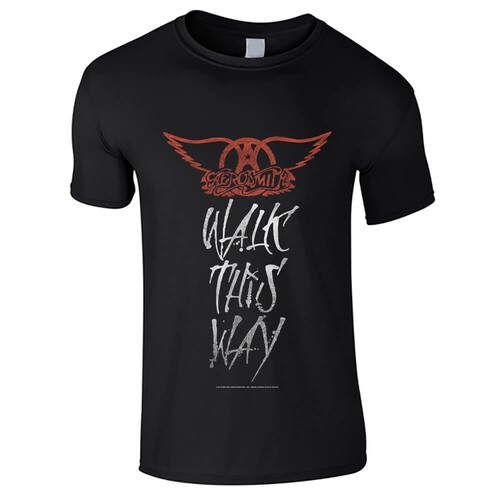 Virallinen Aerosmith -fanituote. Musta lasten t-paita, jossa edessä ”Walk This Way” -painatus.
