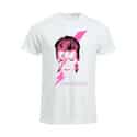 Virallinen David Bowie -fanituote. Valkoinen naisten t-paita, jossa edessä ”Aladdin Sane” -painatus.
