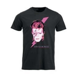 Virallinen David Bowie -fanituote. Musta aikuisten t-paita, jossa edessä ”Aladdin Sane” -painatus.