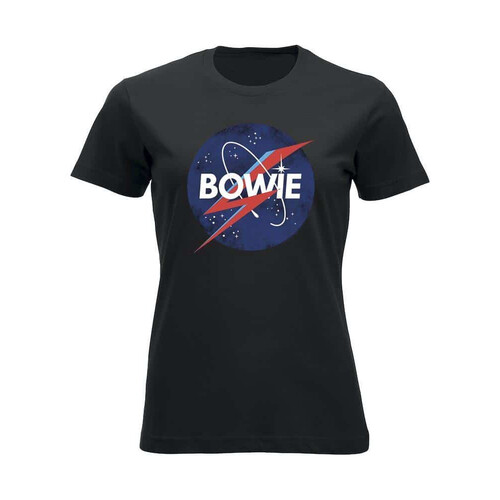 Virallinen David Bowie -fanituote. Musta naisten t-paita, jossa edessä ”Spaceman” -painatus.