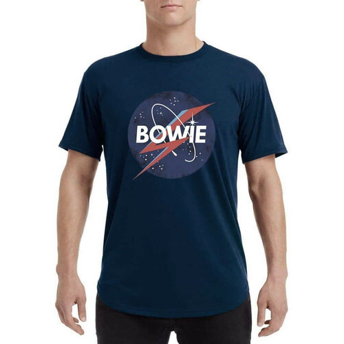 Virallinen David Bowie -fanituote. Tummansininen aikuisten t-paita, jossa edessä ”Spaceman” -painatus.