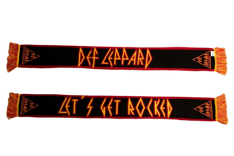 Virallinen Def Leppard -fanituote. Kudottu ”Let´s Get Rocked” kaulahuivi, koko 140cm X 16cm.