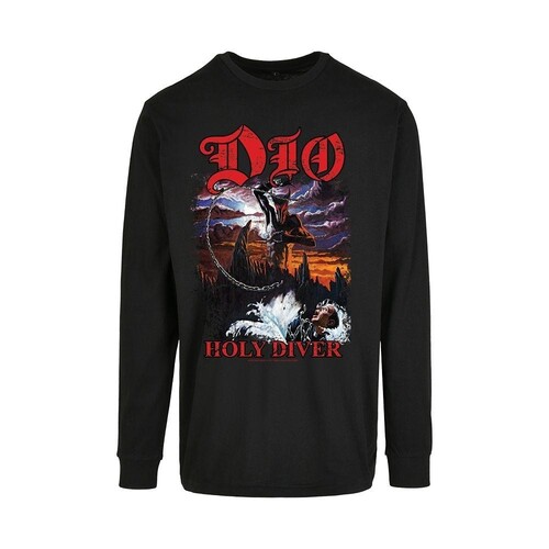 Virallinen Dio -fanituote. Musta aikuisten pikähihainen t-paita, jossa edessä ”Holy Diver” -painatus.