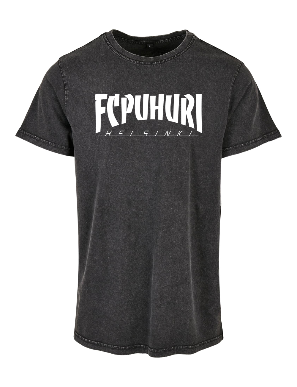Laadukas aikuisten vastuullisesti valmistettu musta happopesty t-paita, jossa edessä ”Text Crest” -painatus.