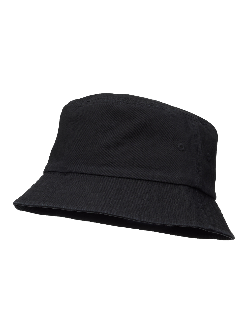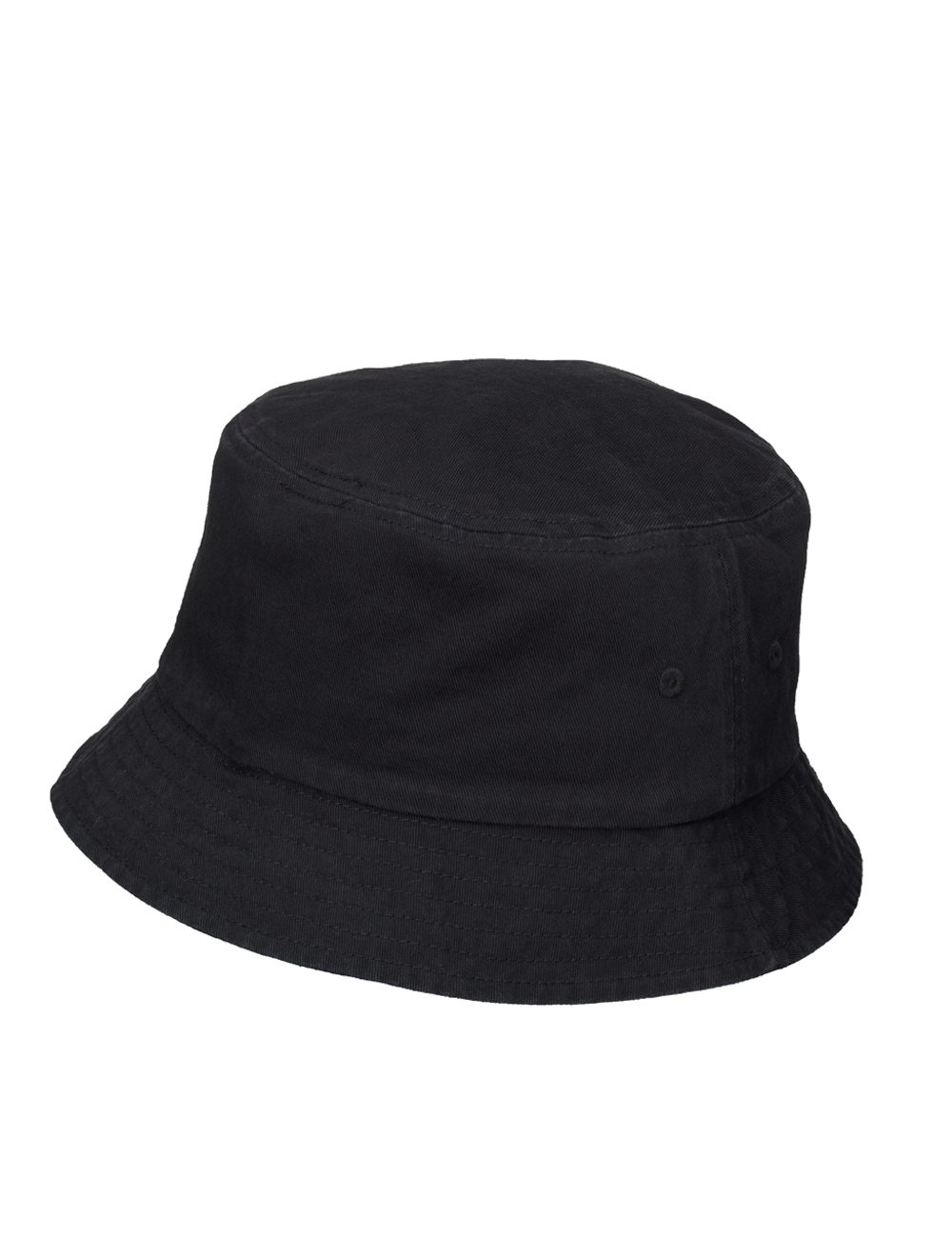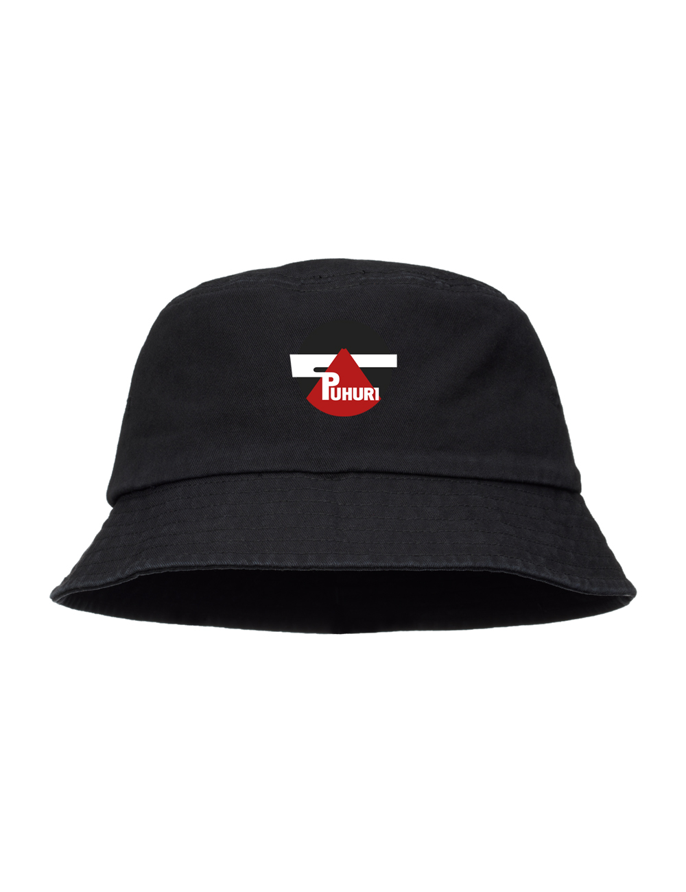Laadukas aikuisten musta kalastajanhattu, jossa edessä ”Puhuri Crest” -painatus.