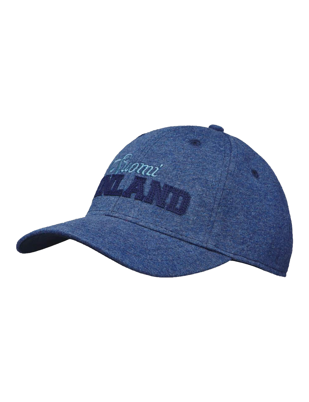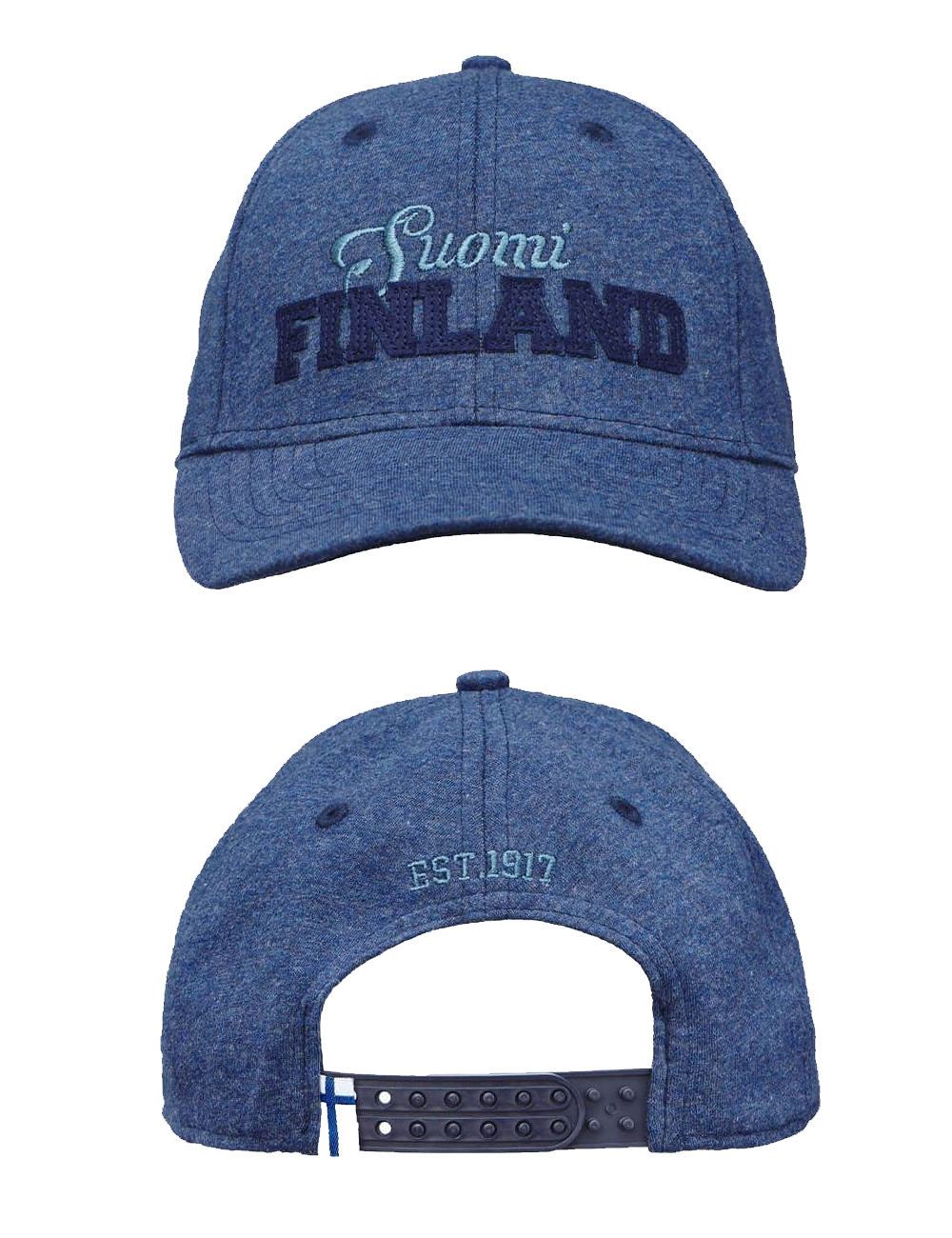 Finland jersey baseball lippalakki. Edessä huopa-aplikaatio sekä 2D -brodeeraus, takana Suomenlippu -saumamerkki sekä EST. 1917 2D -brodeeraus.