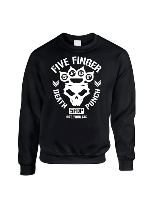 Virallinen Five Finger Death Punch -fanituote. Musta aikuisten collegepaita, jossa edessä ”Army” -painatus.