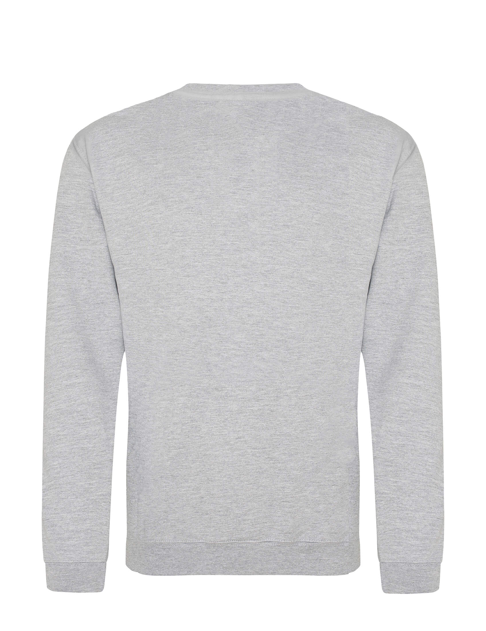 Laadukas vastuullisesti valmistettu aikuisten vaaleanharmaa collegepaita, jossa edessä ”Woodmark” -painatus.