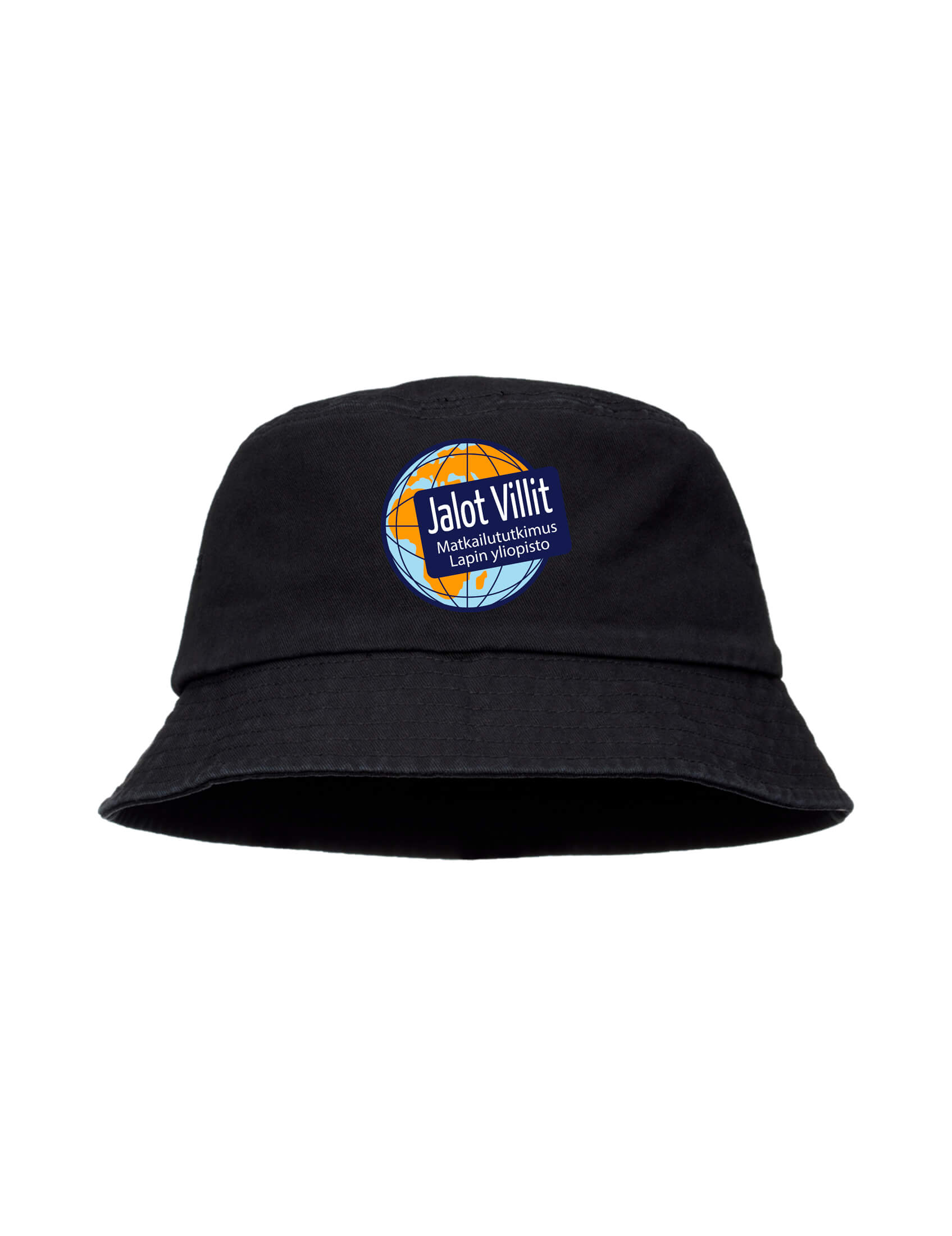 Laadukas aikuisten musta kalastajanhattu, jossa edessä ”Crest” -logopainatus.