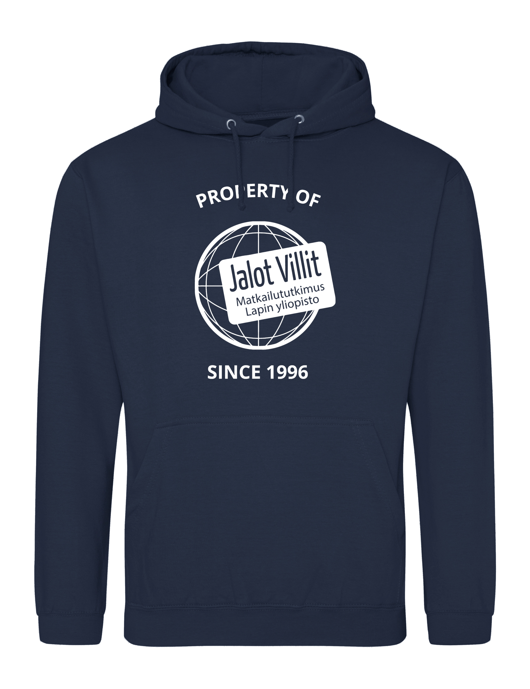 Laadukas vastuullisesti valmistettu aikuisten tummansininen huppari, jossa edessä ”Since 1996” -painatus.