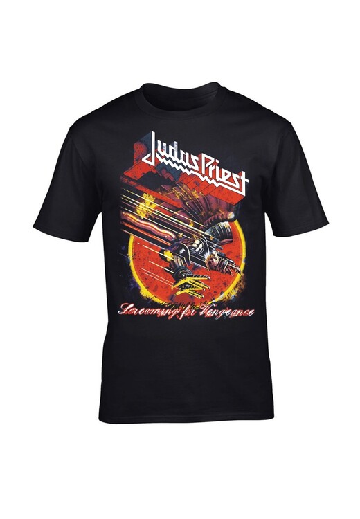 Virallinen Judas Priest -fanituote. Musta aikuisten t-paita, jossa edessä ”Screaming for Vengeance” -painatus.