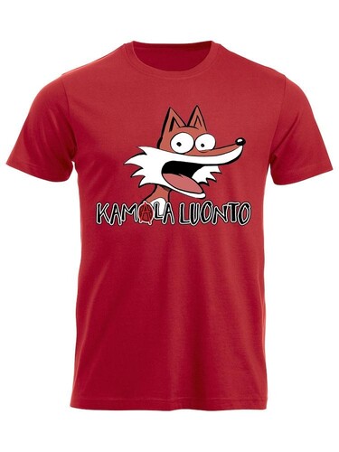 Virallinen Kamala Luonto -fanituote. Punainen aikuisten t-paita, jossa edessä ”Kettu” -painatus.