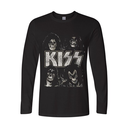 Virallinen KISS -fanituote. Musta aikuisten pitkähihainen t-paita, jossa edessä ”Skulls” -painatus.