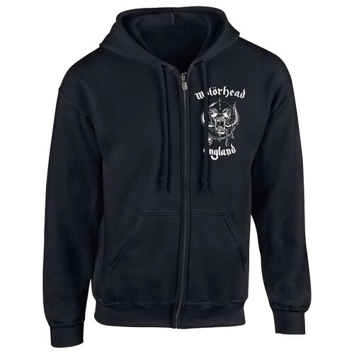 Virallinen Motörhead -fanituote. Musta aikuisten huppari, jossa edessä ”England” -painatus.