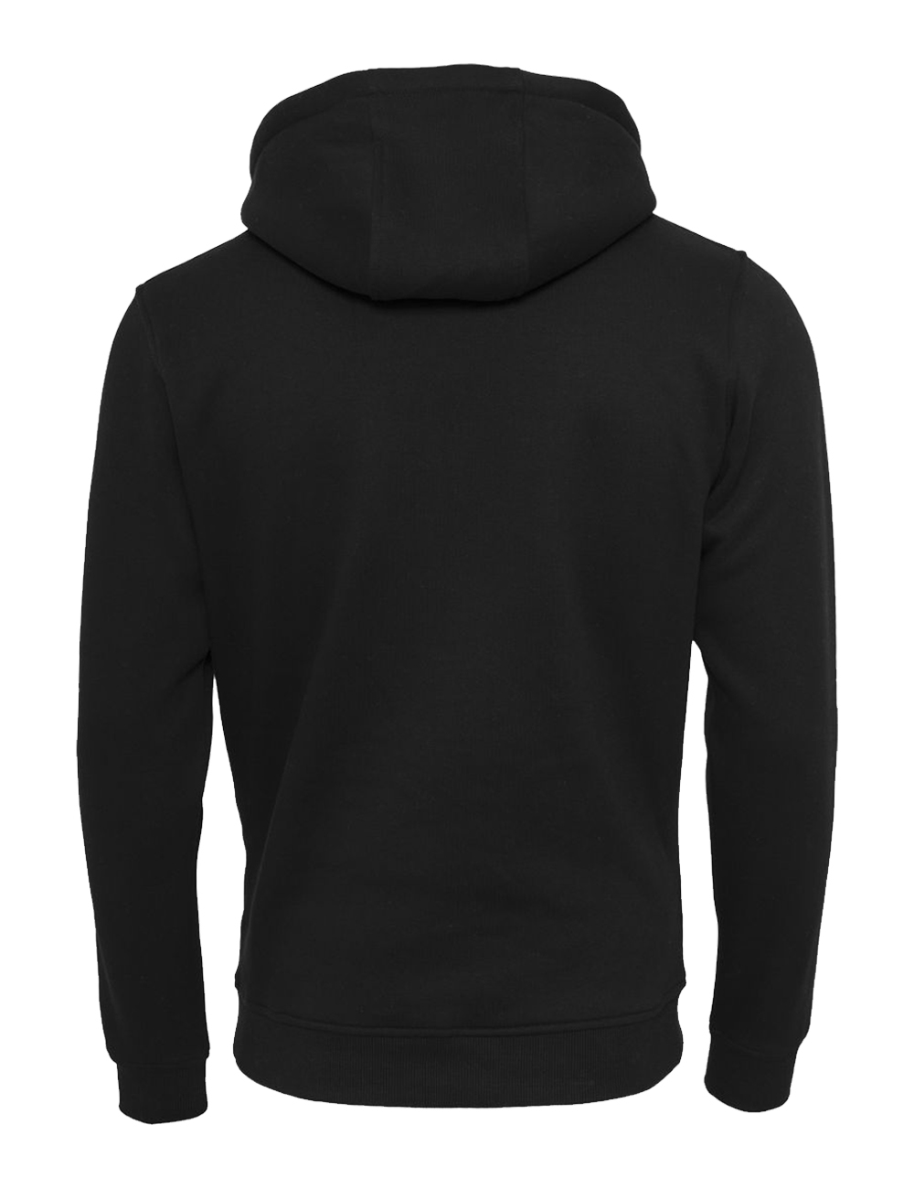 Laadukas vastuullisesti valmistettu aikuisten musta huppari, jossa edessä ”Black & White Insignia” -painatus.