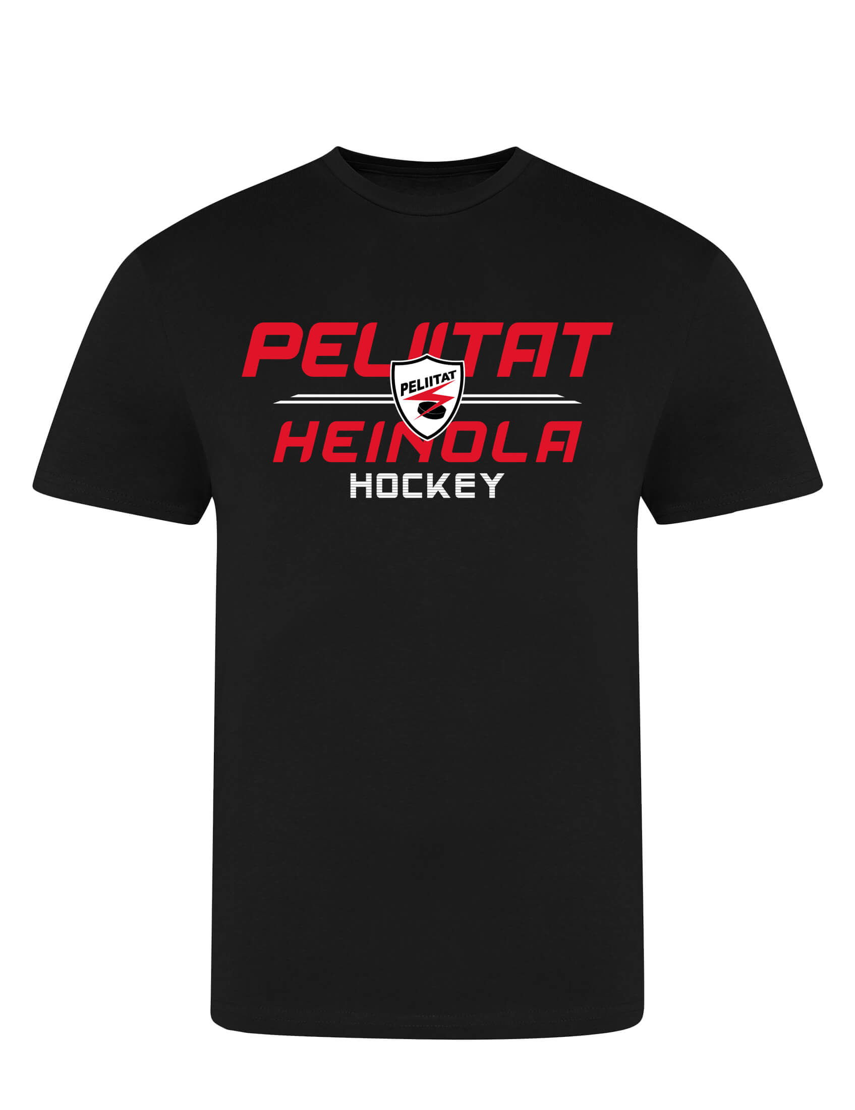 Laadukas ja eettisesti valmistettu musta t-paita, edessä ”Hockey Black” -painatus.