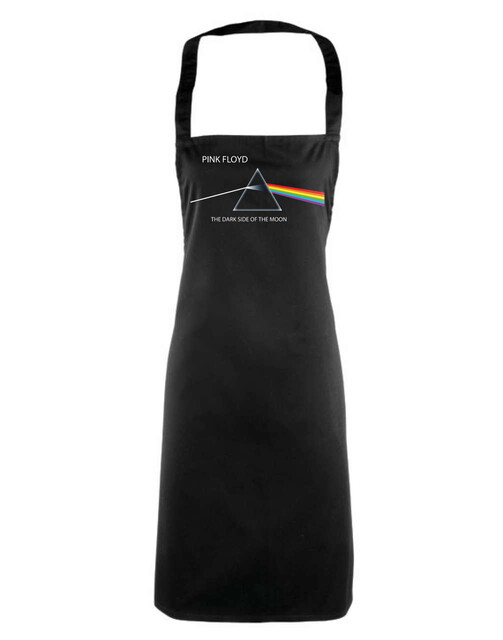 Virallinen Pink Floyd -fanituote. Musta essu, jossa edessä ”Dark Side Of The Moon” -painatus.