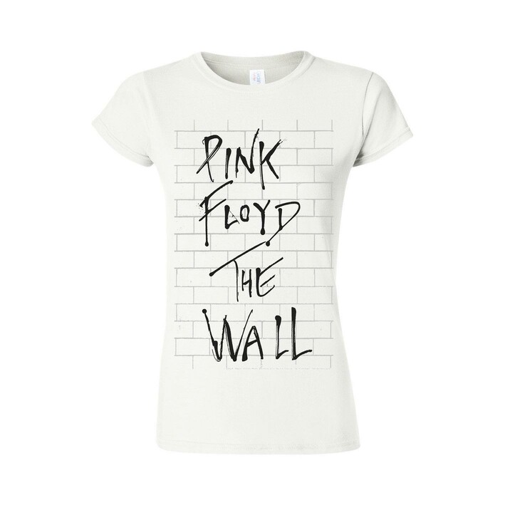 Virallinen Pink Floyd -fanituote. Musta naisten t-paita, jossa edessä ”The Wall” -painatus.
