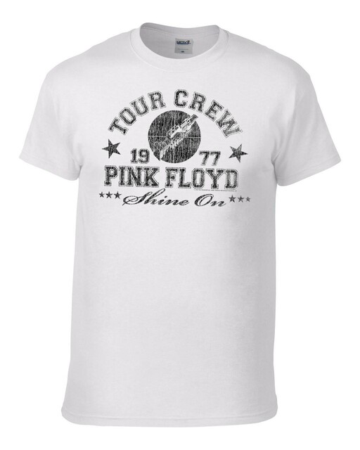 Virallinen Pink Floyd -fanituote. Valkoinen aikuisten t-paita, jossa edessä ”Tour Crew 1977” -painatus.