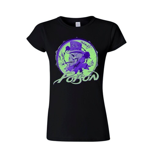 Virallinen Poison -fanituote. Musta naisten t-paita, jossa edessä ”Smoking Skull” -painatus.