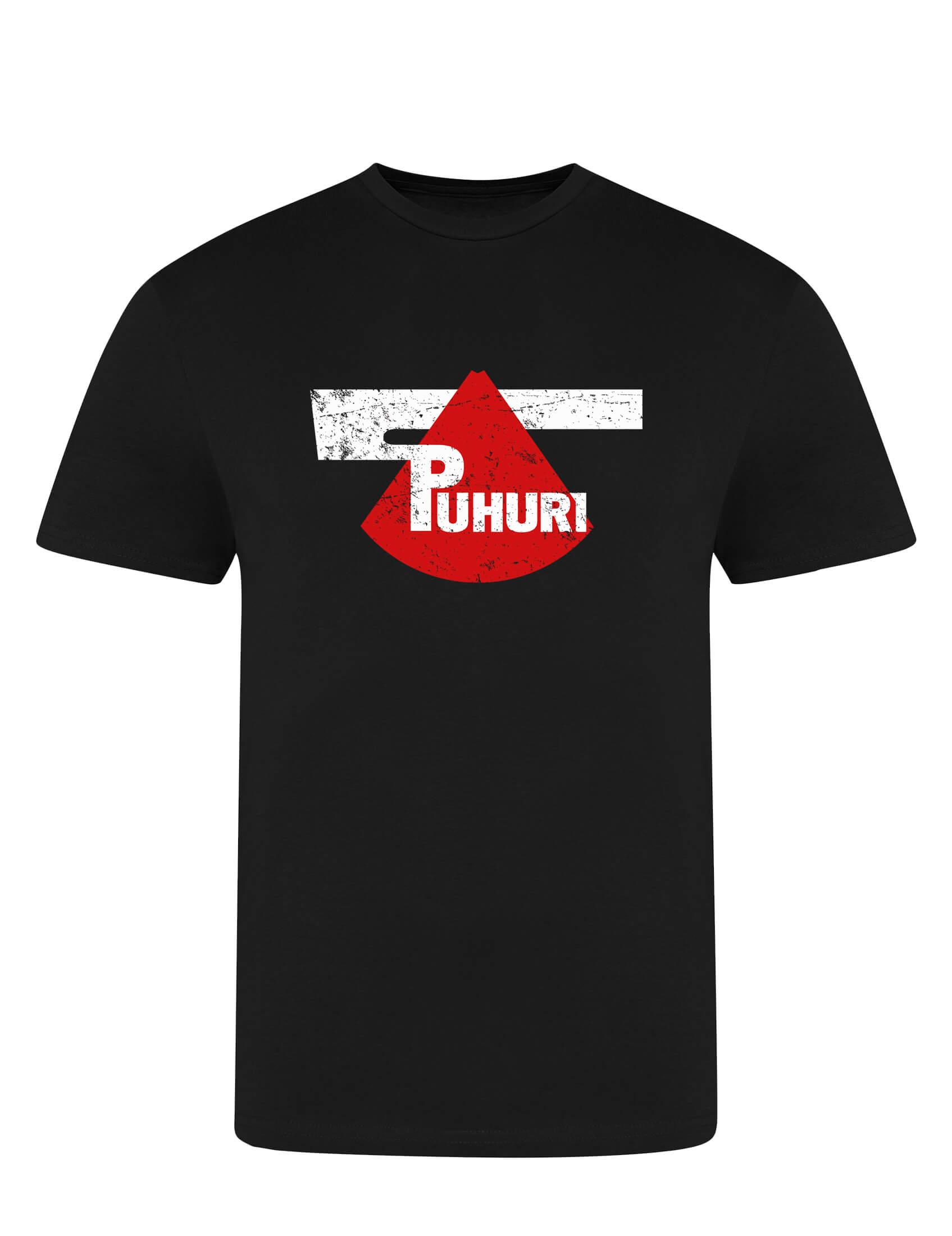 Laadukas ja eettisesti valmistettu tummanvihreä t-paita, edessä ”Punavuori Distressed” -painatus.