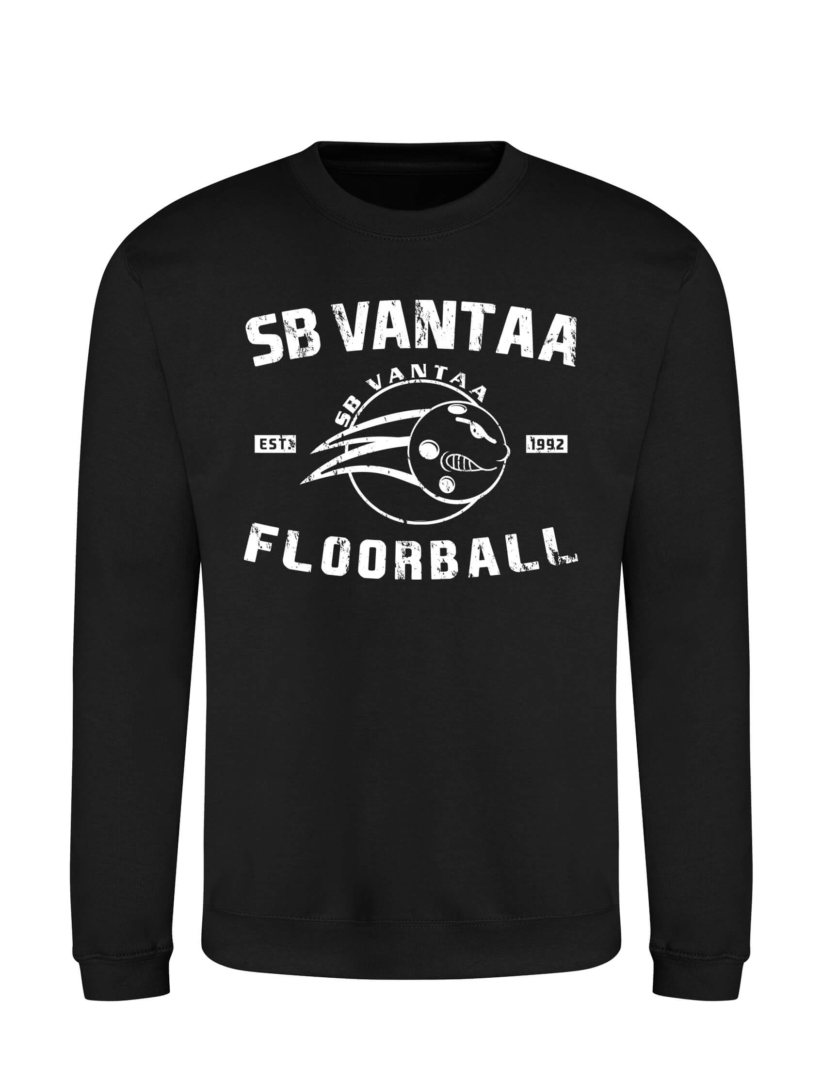 Laadukas ja vastuullisesti valmistettu musta aikuisten collegepaita. Miellyttävä ja kestävä kangas tekee hupparista mukavan jokapäiväiseen käyttöön. Edessä ”Floorball Heritage” -painatus.
