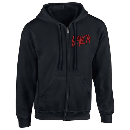 Virallinen Slayer -fanituote. Musta aikuisten vetoketjuhuppari, jossa edessä logopainatus ja takana ”Eagle” -painatus.