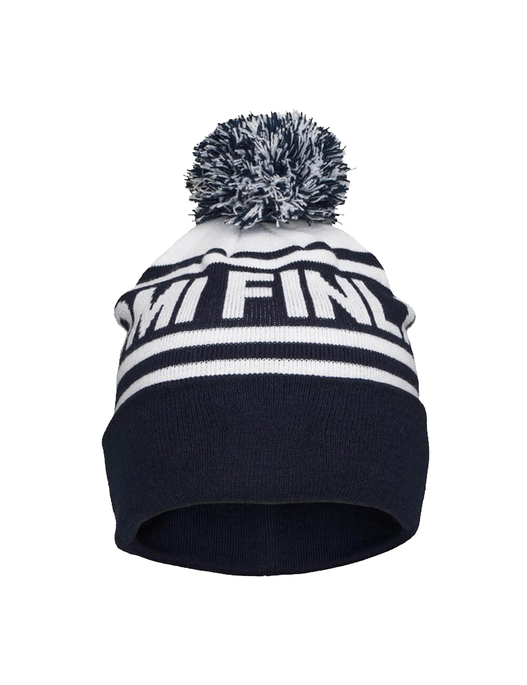 Tyylikäs tupsupipo jacquard neulotuilla suomiteksteillä.