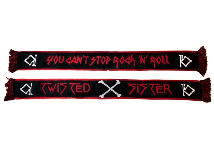 Virallinen Twisted Sister -fanituote. Kudottu ”You Can’t Stop Rock ´n´ Roll” kaulahuivi. Koko 140cm X 16cm.