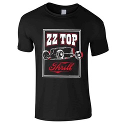 Virallinen ZZ Top -fanituote. Musta aikuisten t-paita, jossa edessä ”Thrill” -painatus.