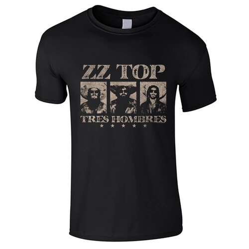 Virallinen ZZ Top -fanituote. Musta aikuisten t-paita, jossa edessä ”Tres Hombres” -painatus.